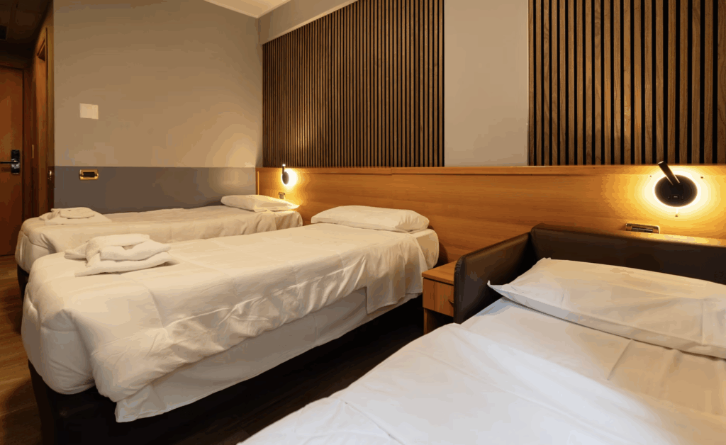 Quando le camere singole sono al completo, vengono rese disponibili camere doppie senza costi aggiuntivi come camere singole. Disponibili con un letto matrimoniale o due letti singoli. Perfette per coppie e amici. La scelta ideale per coppie o amici che viaggiano insieme, per un soggiorno confortevole e spazioso.